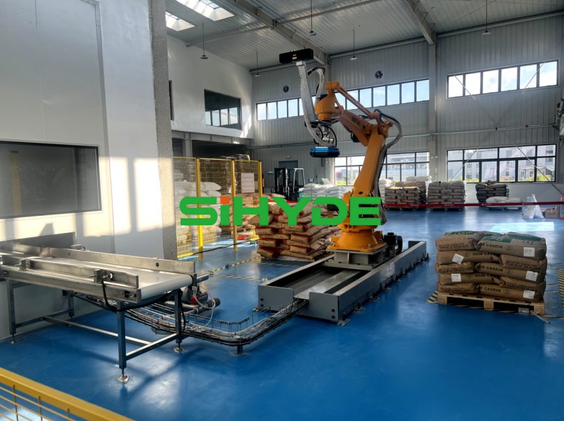 機(jī)器人碼垛:每小時碼垛≥120袋,垛型整齊防倒塌;